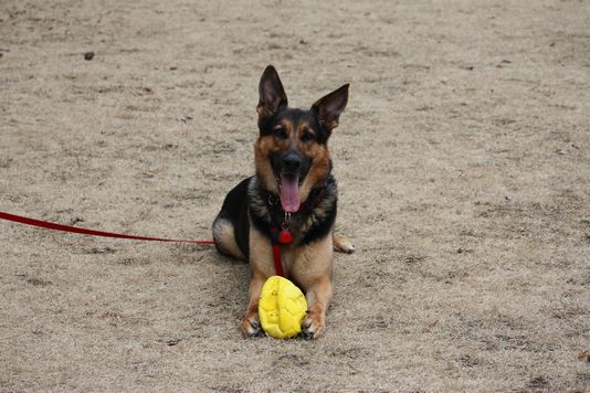 ヘルモがガッシリと掴んでる黄色いボール、アレってシェパード専用に作られたボールなんだ