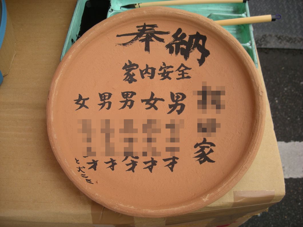 その代わりに、素焼きの炮烙に年齢・性別を書いて奉納すると、その壬生狂言の