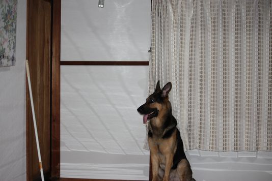 部屋のドアの前に正座して、お利口にして待ってるんだ!