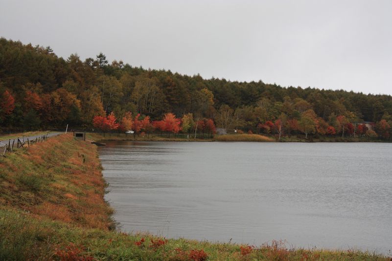 宿泊したホテルの側にある女神湖畔の紅葉写真です↓